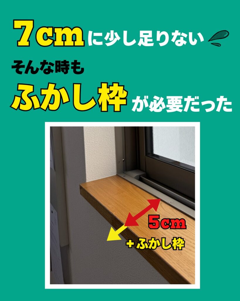 7cmに満たない場合は『ふかし枠』を使って窓枠を延長し、設置をしていました。