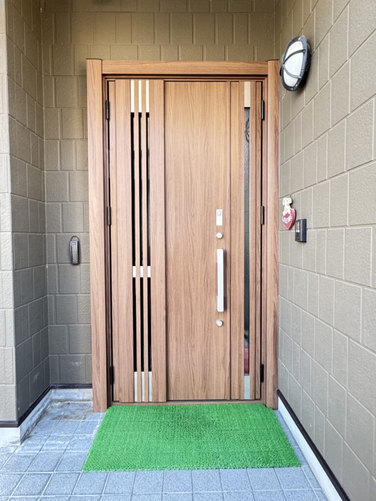 こちらの玄関ドアをたったの1日新しく、機能的にリフォームします😄
