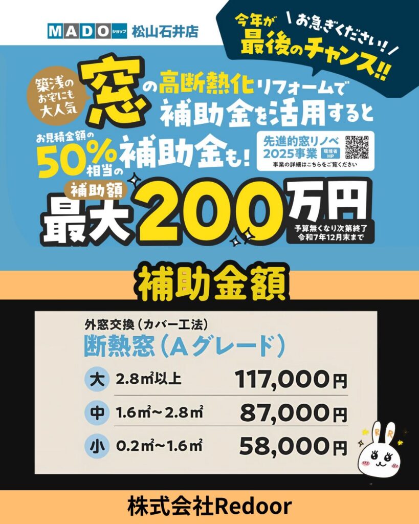 3カ年計画で行っている、先進的窓リノベ事業(窓に特化した国の補助金)は2025年12月末または、