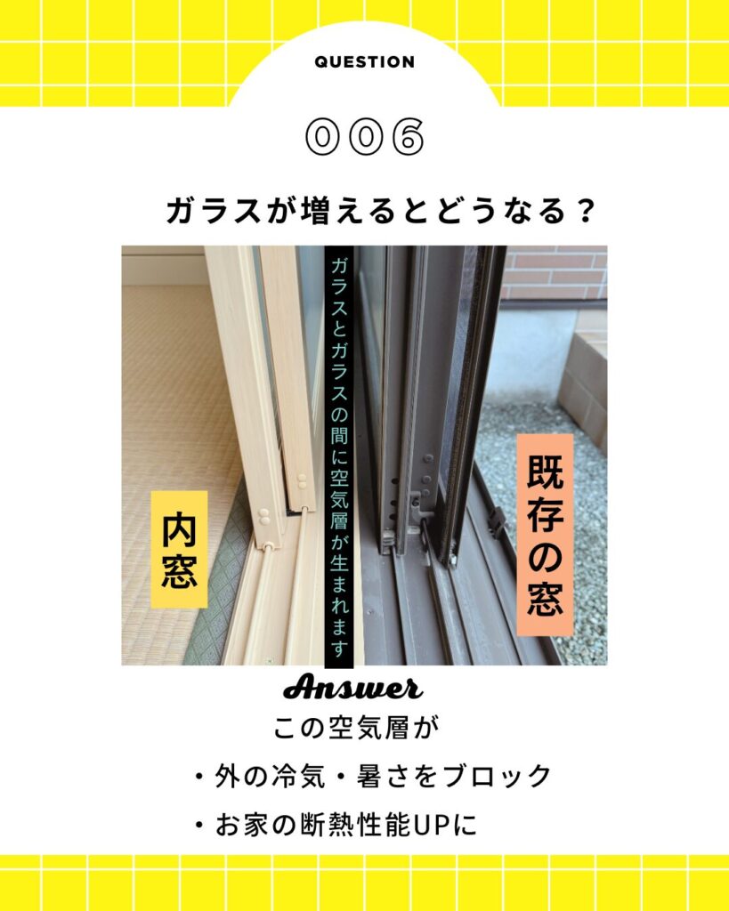 内窓を設置すると、 既存の窓と内窓の間に、さらに空気層が生まれます。