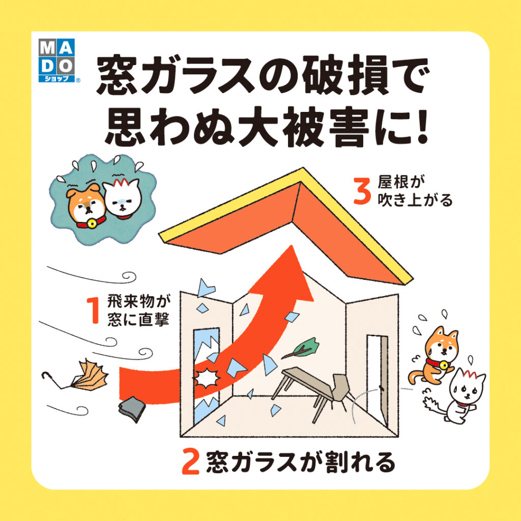 皆さんもご存知の通り、台風の被害で一番多いのは 窓ガラス なんです💦