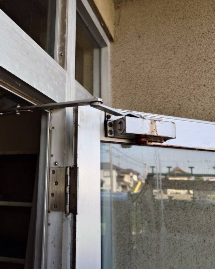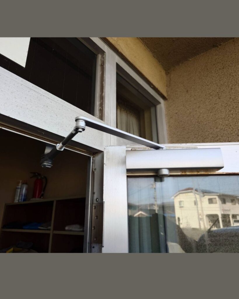 ドアクローザーは、ドアがゆっくり静かに閉まるように制御する装置で、