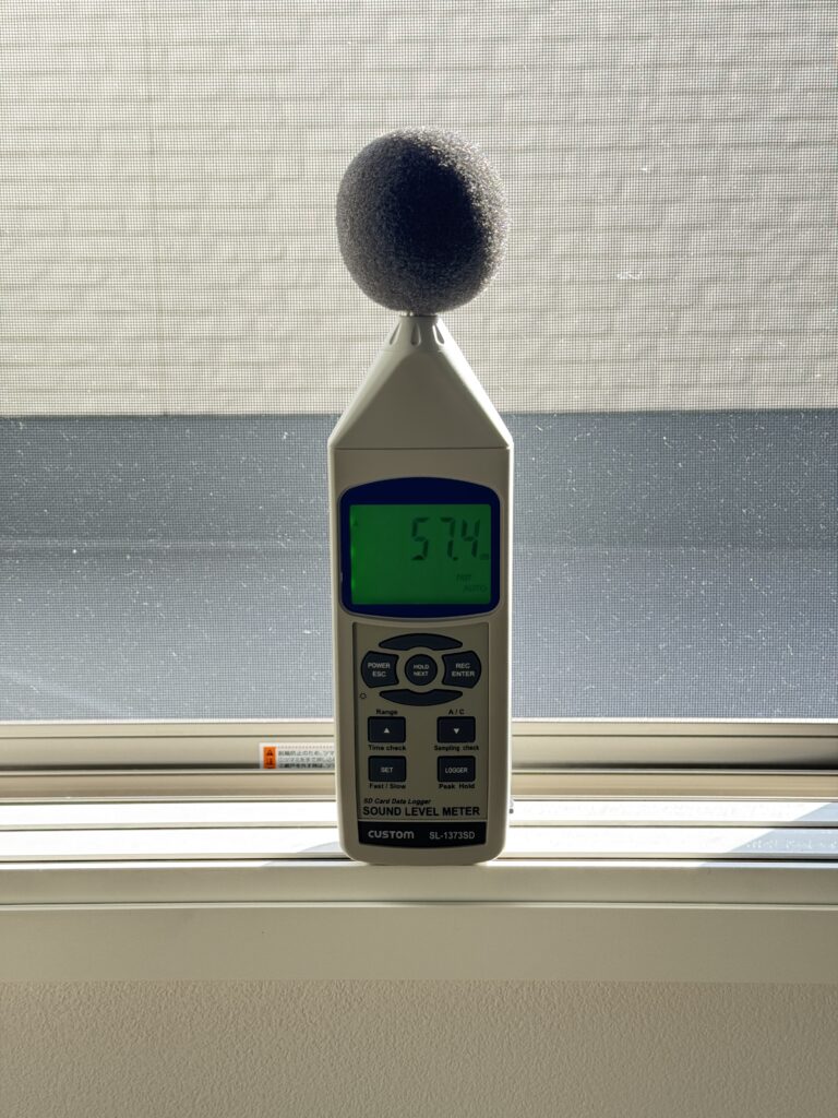 今回の動画では、機械を使用して実際に騒音レベルを測定しました。