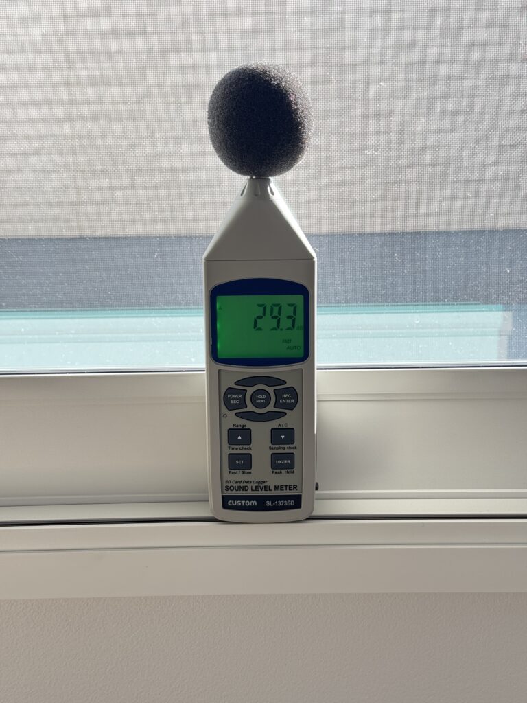 今回の動画では、機械を使用して実際に騒音レベルを測定しました。