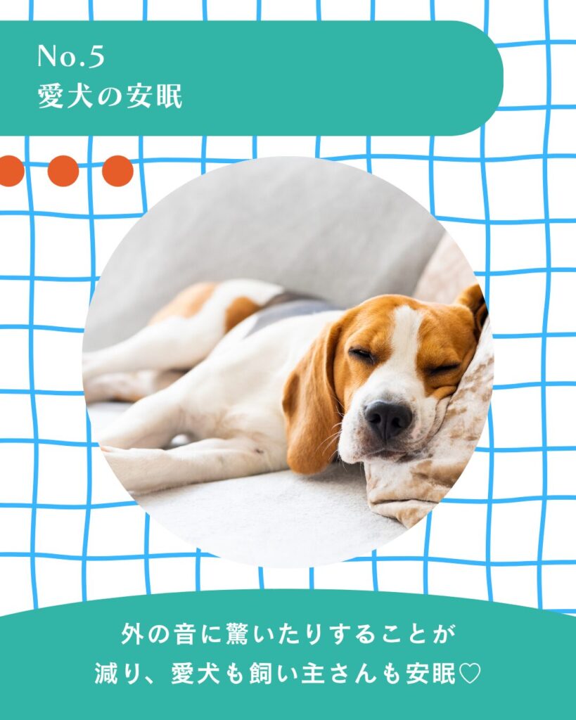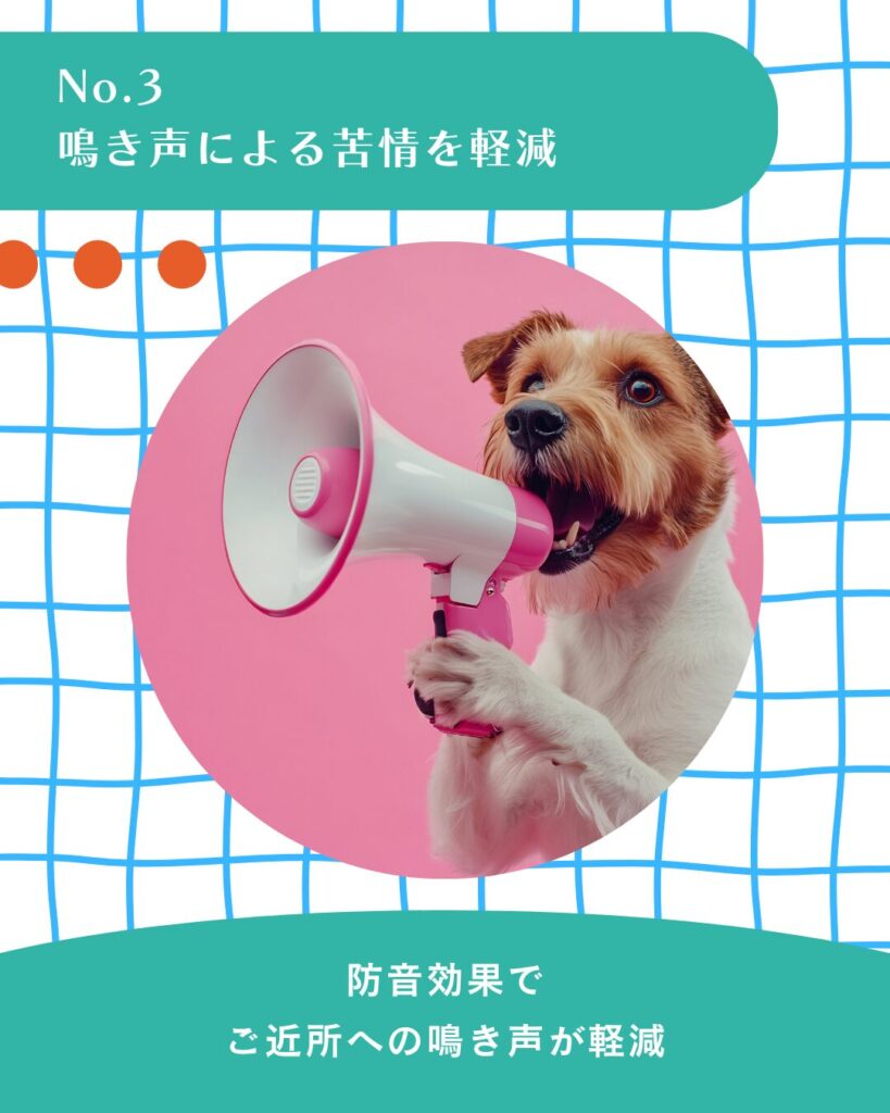 ペットの鳴き声が外に漏れるのを抑え、ご近所への配慮にもつながります。