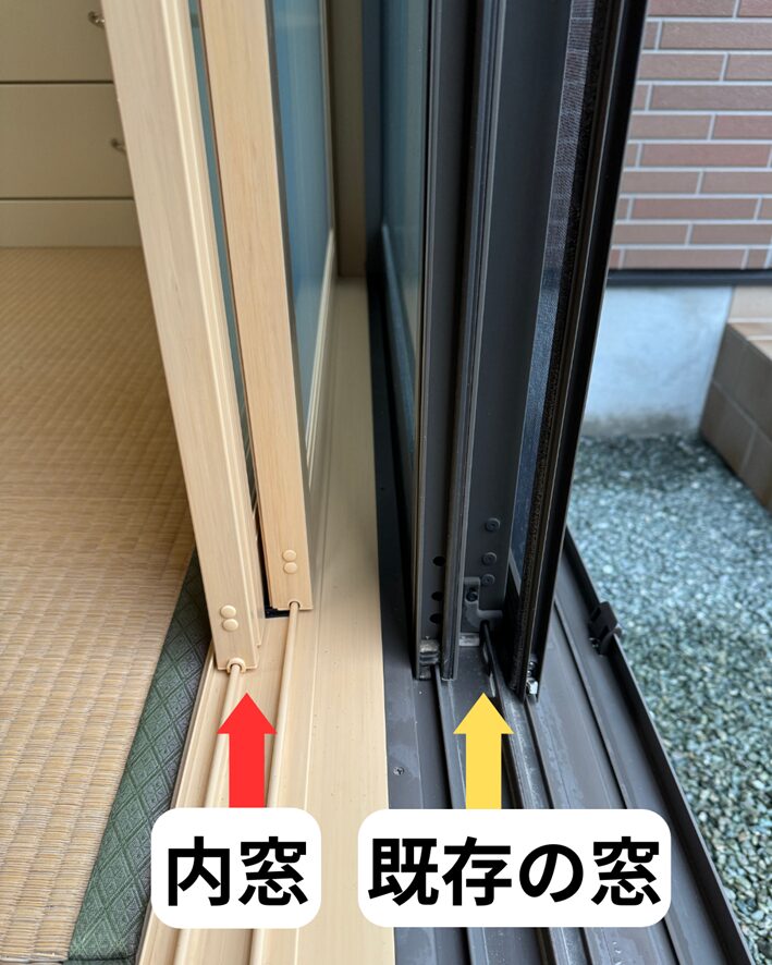 元々ある既存の窓はそのままで、手前に新たに窓を取付けし、窓が2つになります。