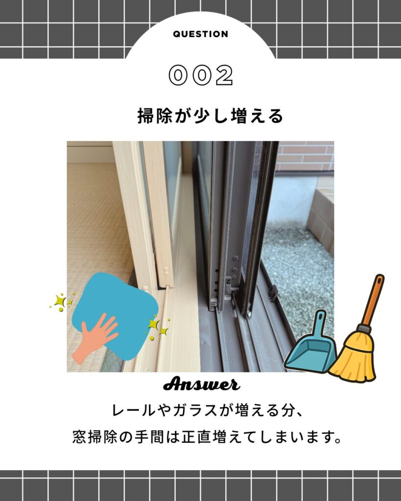 お掃除の手間も増えてしまうのが内窓の宿命です。