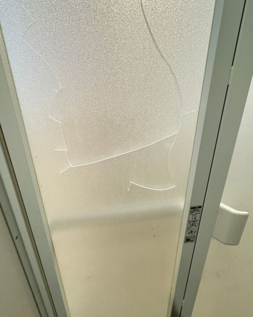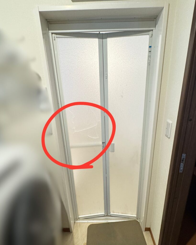 「物がぶつかって浴室の折れ戸が割れてしまった…!」