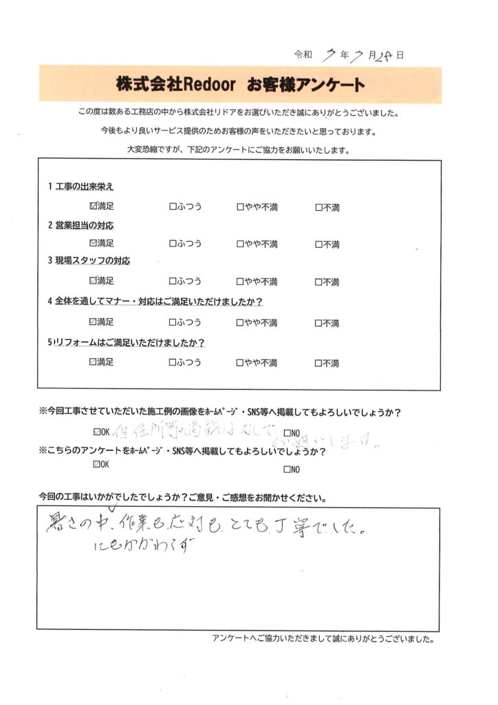 この度は、株式会社Redoorに工事をお任せいただきまして
