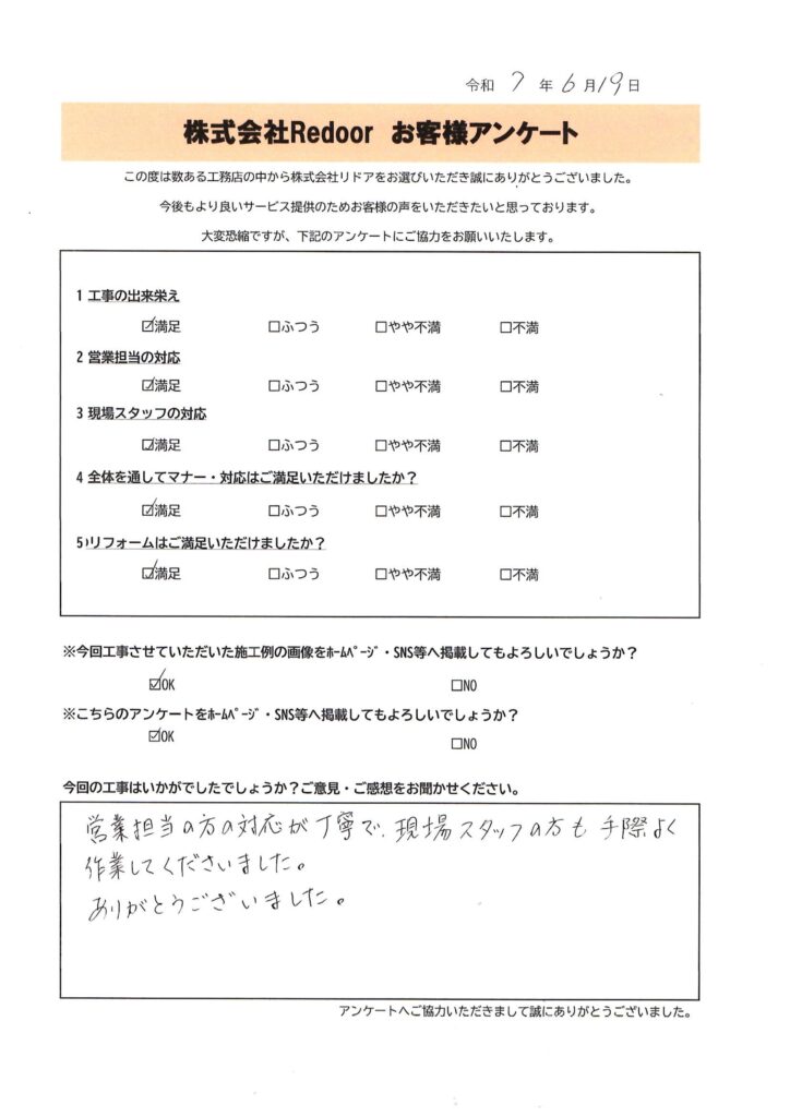 この度は株式会社Redoorに工事をお任せいただきまして