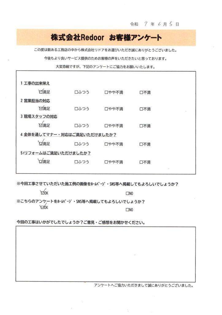Ⅰ様、この度は株式会社Redoorに工事をお任せいただきまして