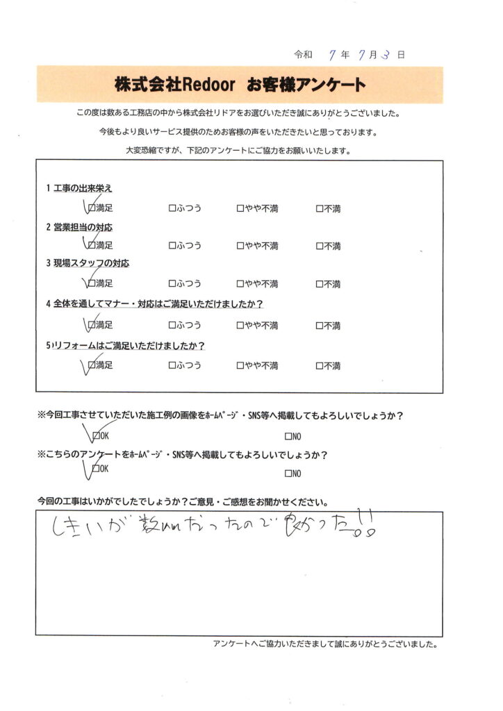 『敷居が数㎜だったので良かった』とのコメントありがとうございました!