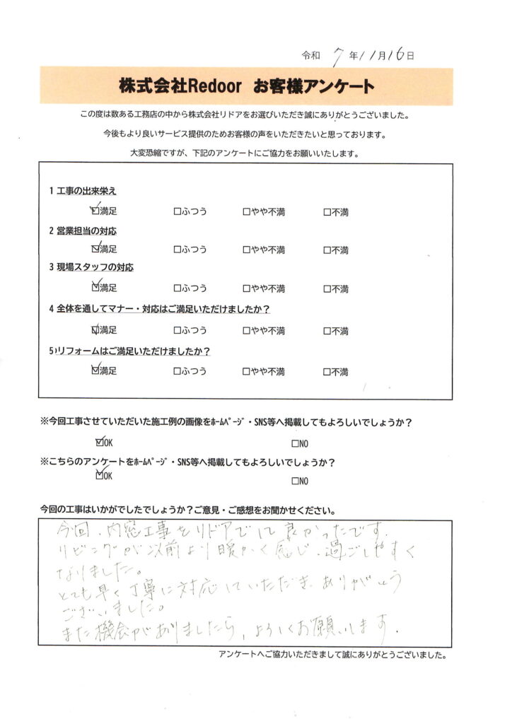 この度は、株式会社Redoorに工事をお任せいただき、誠にありがとうございます。