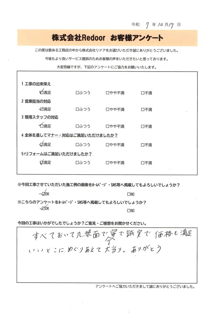 先日、工事をさせていただいたF様より